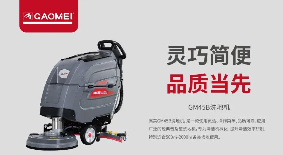 品性兼優(yōu),助力清潔。隨著社會經(jīng)濟(jì)的發(fā)展,人們對于工作生活的環(huán)境要求不斷提高。例如高檔寫字樓等辦公場所環(huán)境,有賴于高效、省心的清潔方式來維護(hù)。高美在應(yīng)對清潔效果、清潔效率、噪音控制、形象等高標(biāo)準(zhǔn)需求方面,有著豐富的經(jīng)驗(yàn),并深受市場信賴。重點(diǎn)推薦產(chǎn)品高美GM-MINI駕駛式洗地車高美GM45B手推式洗地機(jī)場景介紹大廳:地面多以大理石、瓷磚等硬質(zhì)材料為主,日常人流量大,污漬產(chǎn)生快,清潔度要求高,需要保持較高的清潔頻率,單次作業(yè)時(shí)間要求極短??筛鶕?jù)面積大小選駕駛式或者手推式洗地機(jī),可以快速有效實(shí)現(xiàn)清洗、吸干的同步作業(yè)。走廊:包電梯、電梯間、走廊等場所,較為狹窄,適合更加小巧靈活的清潔設(shè)備,手推低速更安全,且能滿足一定清潔效率的需求。GM45B手推式洗地機(jī),小巧靈活,兼具品質(zhì)和性價(jià)比,是中小型場景的理想之選。辦公場所:場景較為復(fù)雜,硬質(zhì)地面可選用靈活小巧的洗地機(jī)。如果是地毯,日常清潔可以選用高美吸塵器V20,中長期護(hù)理可以選用高美地毯清洗機(jī)GM-4或者干泡地毯清洗機(jī)FB1517/MF-10。大樓外圍、衛(wèi)生間等場所:多以硬質(zhì)地面為主,同樣可以選擇以上兩款機(jī)型來進(jìn)行清潔作業(yè)。涉及大理石等地面,需要定期護(hù)理的,可以選用高美晶面加重翻新機(jī)FC-2517。