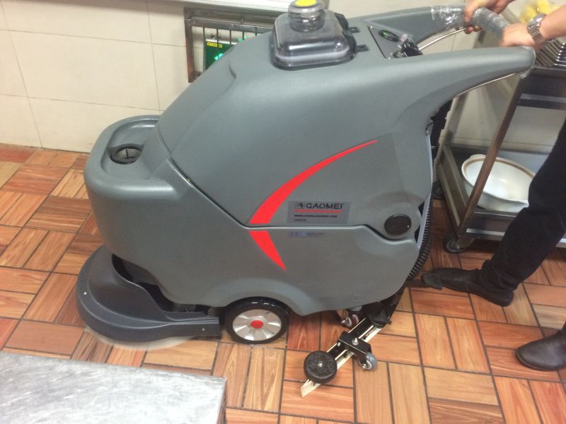 2:當(dāng)需要清洗污垢很多的地面時(shí),可以先對(duì)地面進(jìn)行簡(jiǎn)單的清洗,需要先把吸水扒升起來,并關(guān)閉吸水電機(jī),不使用商用洗地機(jī)的吸水功能的同時(shí)對(duì)地面進(jìn)行反復(fù)的刷洗,當(dāng)對(duì)地面刷洗幾遍后再開啟吸水電機(jī)降下吸水扒,一邊刷洗地面一邊吸走地面的污水,這樣清洗地面清潔效果會(huì)很好,對(duì)較為臟的地面更有效。